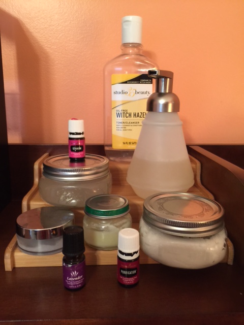I use a combination of what I call my Top Ten Young Living Essential Oils For Skincare: Purification, Lavender, Melrose, Oregano, Lemon, Tea Tree, Lemongrass, Patchouli, Frankincense and Geranium. I use some of these oils by themselves and others in facial mixes I make myself. Some of you might be thinking, I don’t have time to make face wash, toner, etc. Some things to ponder: I can make whatever I need faster than going to the store to get it. While premium essential oils cost a little more, in the long run, I’m saving a ton of money, because a little goes a long way. I have some facial products I made months ago that I use every day that are still half full. If something doesn’t work, I can add to it or try a new combination. I know what’s in what I put on my face and can also pronounce all the ingredients.