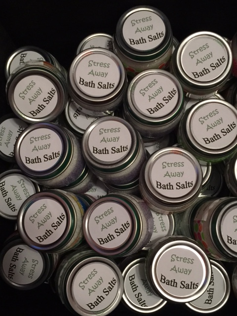 The good news about tomorrow’s show is that it’s inside, in a nice mall in Franklin, Tenn. So, while I won’t have to deal with a tent or lots of little items and jewelry displays, I still need to prepare, as anything worth doing is worth doing well. I will make a list of everything I need for tomorrow and pack my car tonight. I’ve already recycled 85 2 oz. baby jars, filled them with homemade Stress Away bath salts and labeled them and a mountain of brochures. First come, first serve. Last night, I set up a table in the middle of the kitchen to figure out how to attach my banner to the front of the table and what my sit-arounds would look like. And, I am lucky to have a friend to help me out tomorrow. Thanks, Paula!